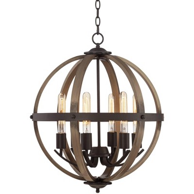 Tafford Mahogany Wood Finish Chandelier 27 1 2 Wide Farmhouse Rustic Curving Clear Outer Scavo Inner Glass 6 Light Fixture For Dining Room House Kitchen Entryway Bedroom Franklin Iron Works Amazon Com
